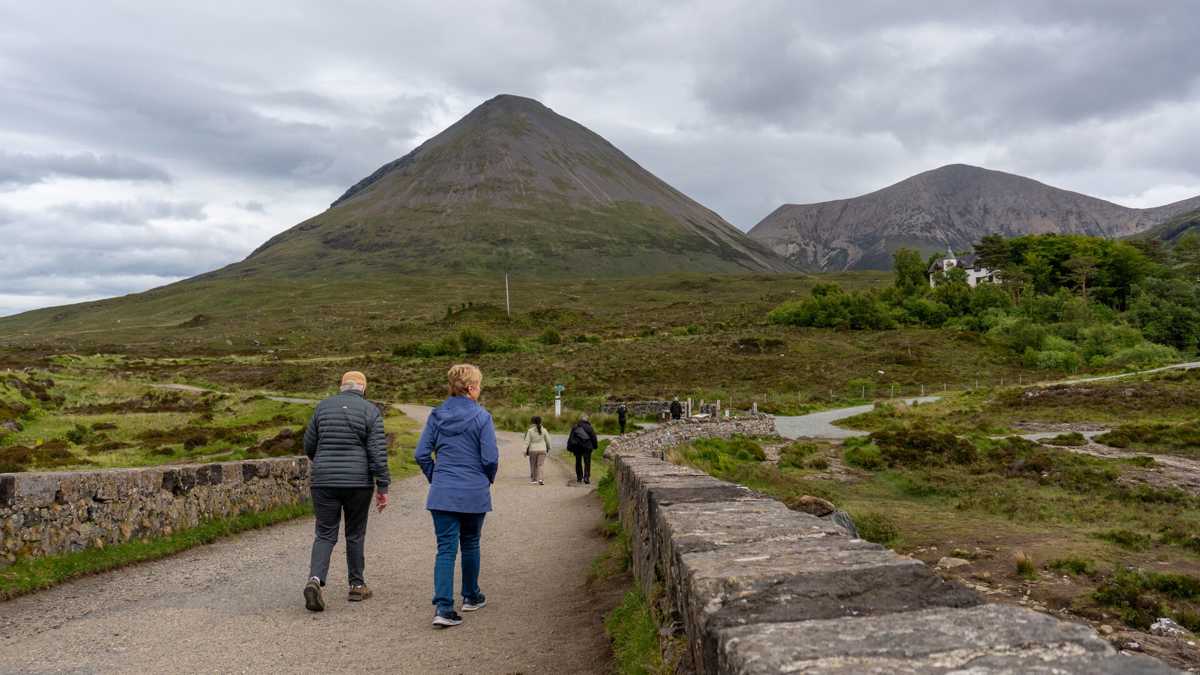 Enjoy a 75-minute walk to the Fairy Pools, a real highlight of the day. The trail runs along a rocky glen at the base of the Cuillin Mountains, following a stream with clear pools and small waterfalls. The terrain is mostly gravel with some uneven sections and river crossings using stepping stones, so take your time and soak in the magical landscape around you.